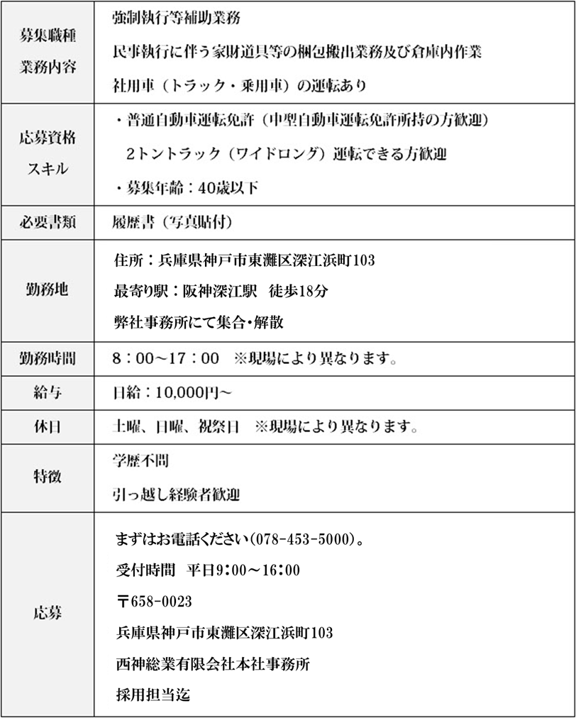 家賃滞納、明渡執行など民事執行の補助業務なら西神総業にお任せください。